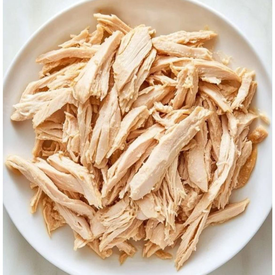 Tortilla, ripio, pollo desmechado, lechuga, tomate, queso, cebolla caramelizada y porción de papa.