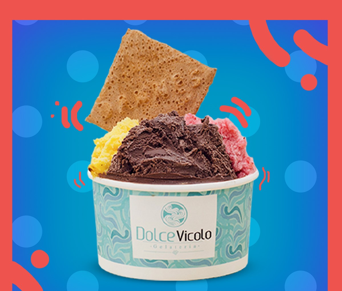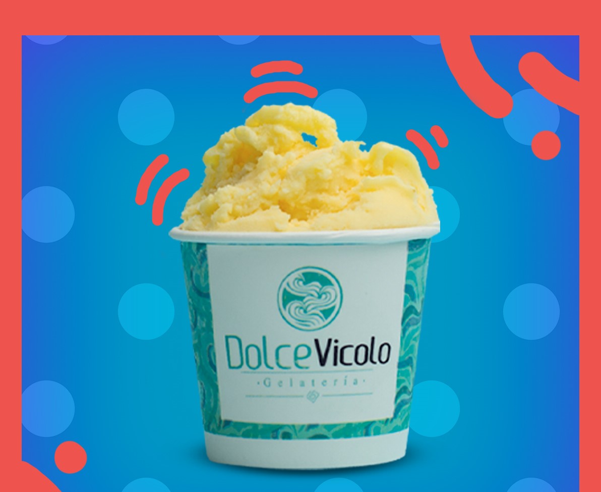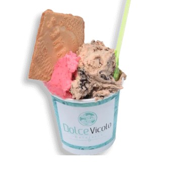 Vaso con promedio 210gr de helado, el cual puedes llenar con hasta 3 sabores + Agua Dolce Vicolo