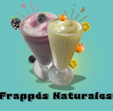 Frappé o granizado de frutas, 100 natural, hecho con gelato y acompañado de leche condensada.
