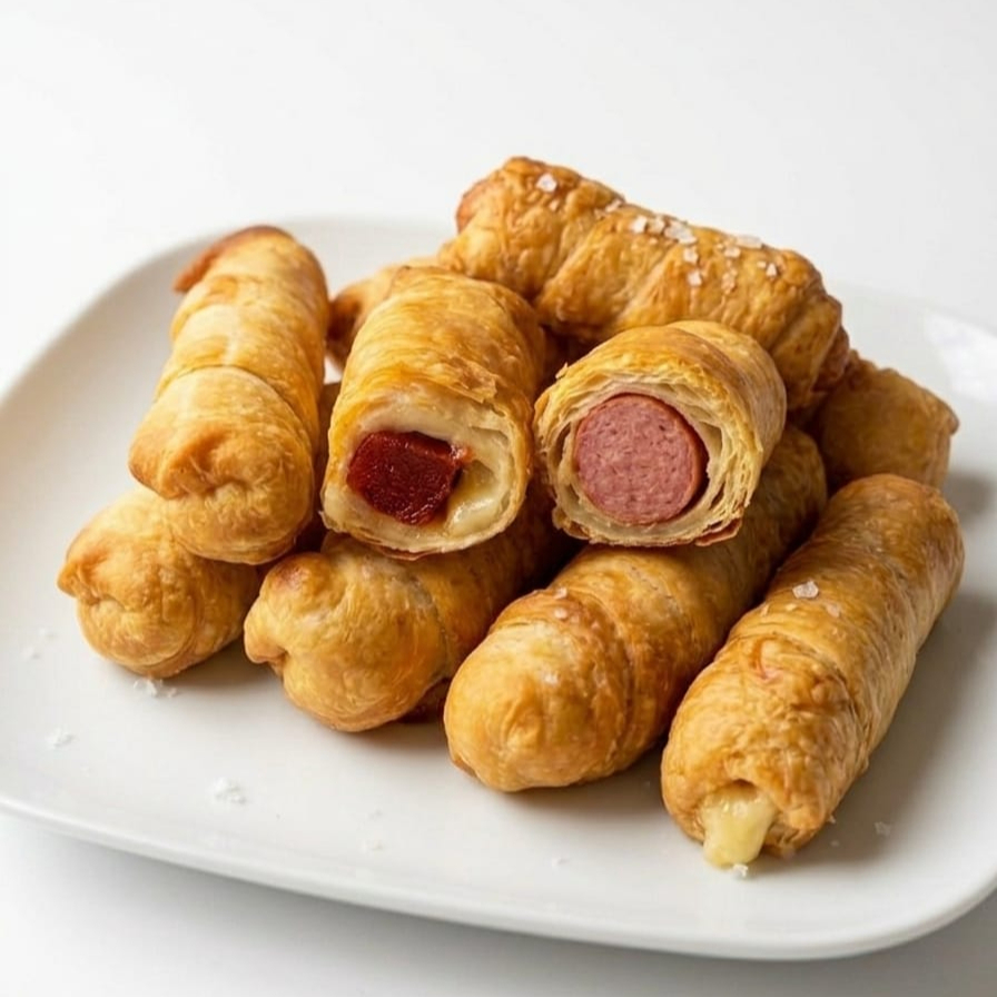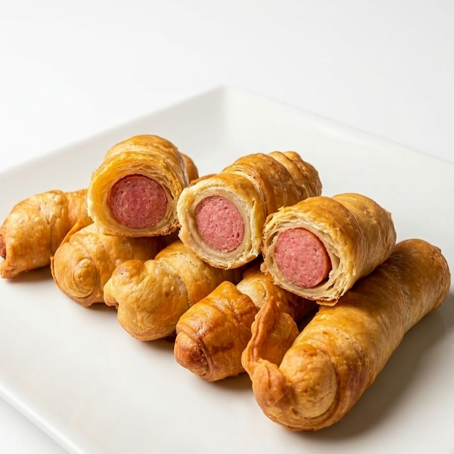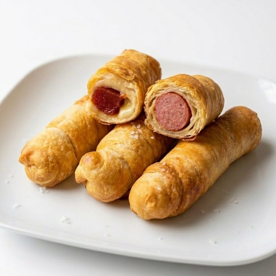 5 Deditos de salchicha y salchicha con queso, acompañados de 1 salsa para untar.