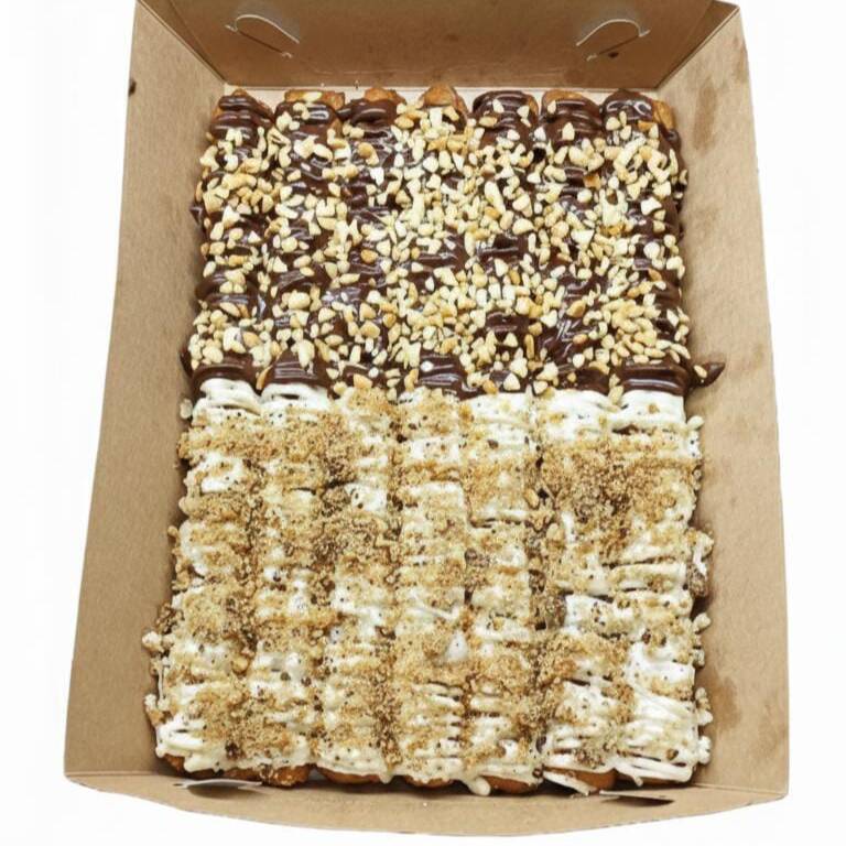 6 Churros en forma de lazo, decorados con 2 salsas y 2 toppings a elección.