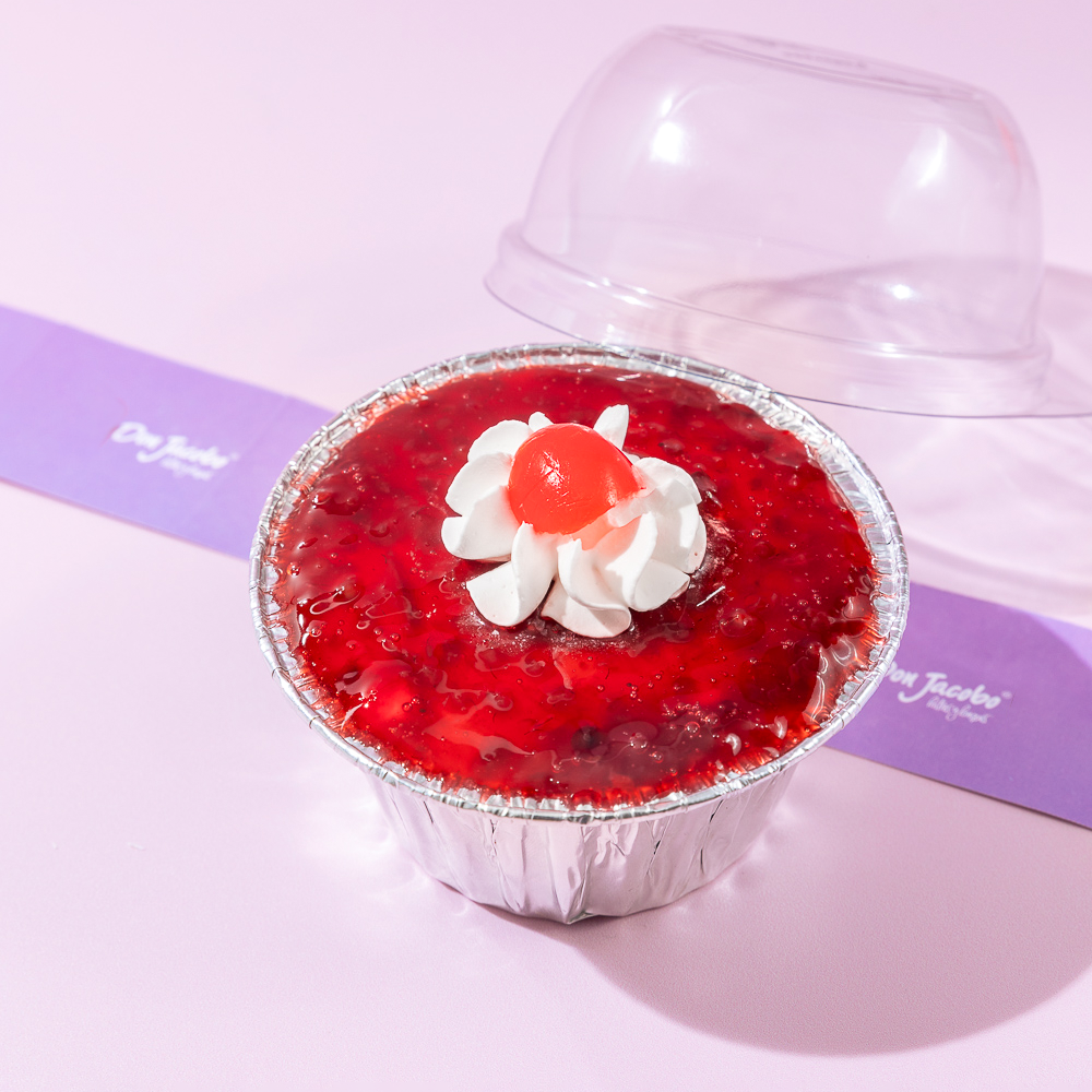 La receta clásica de Don Jacobo tamaño personal, bizcochuelo de vainilla bañado en eI original tres leches genovesa, cubierto con crema tipo chantilly, decorado con ralladura de chocolate y cerezas sobre copos de crema.