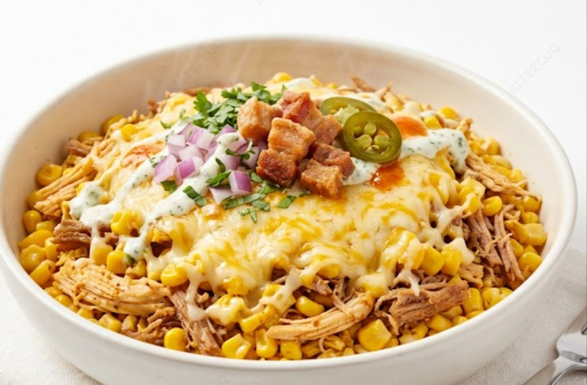 Acompañada de pollo, salchicha, maicitos, tocineta, queso, huevo codorniz.