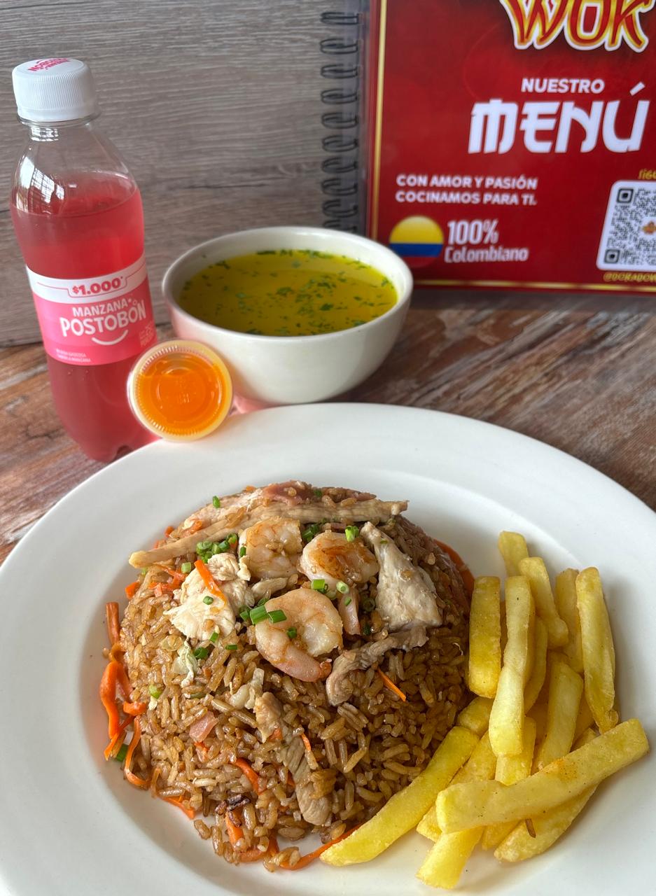 Combo Arroz Chino + Papas + Consomé + Bebida