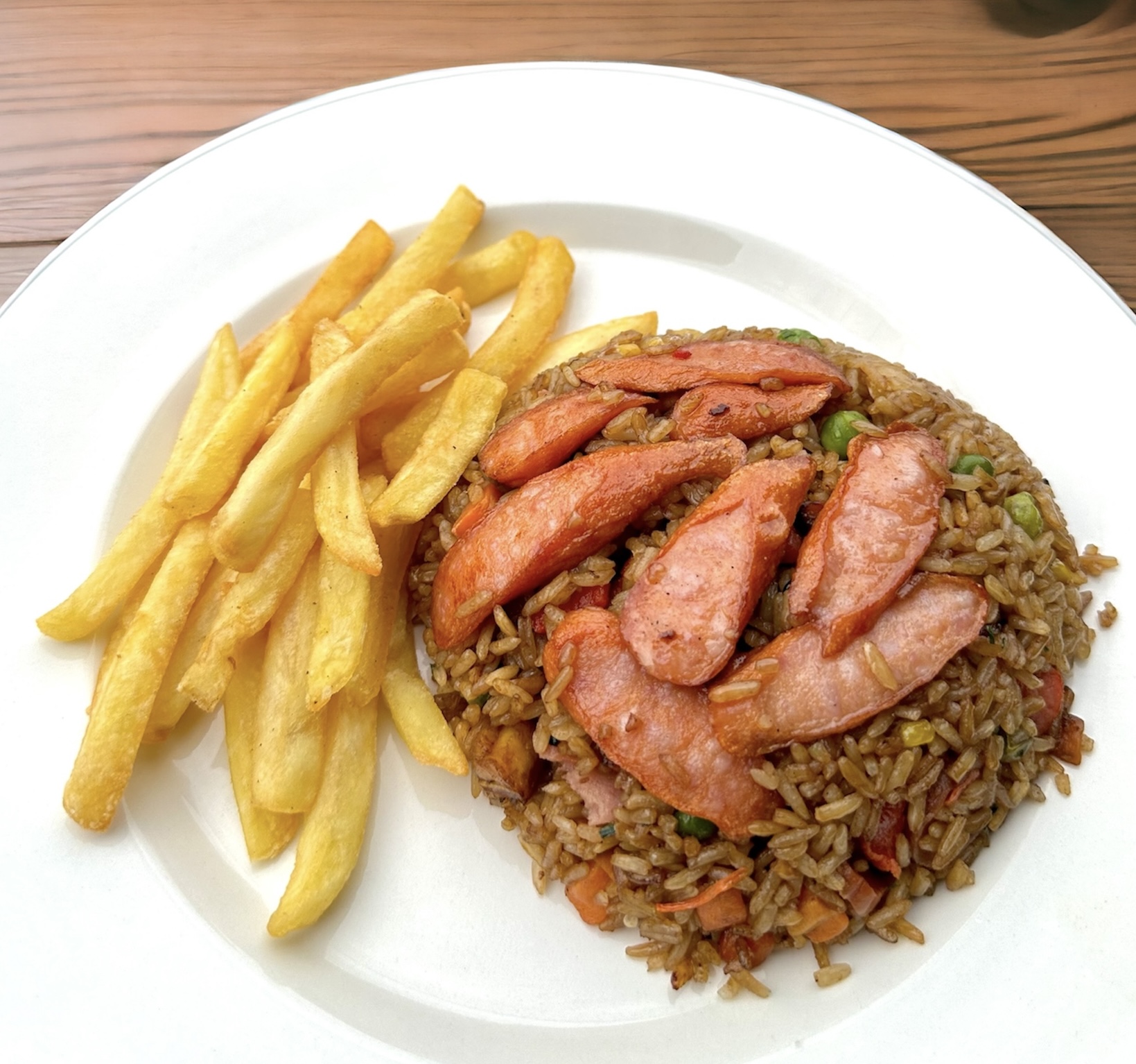 300 gr de arroz chino + 100 gramos de papas a la Francesa