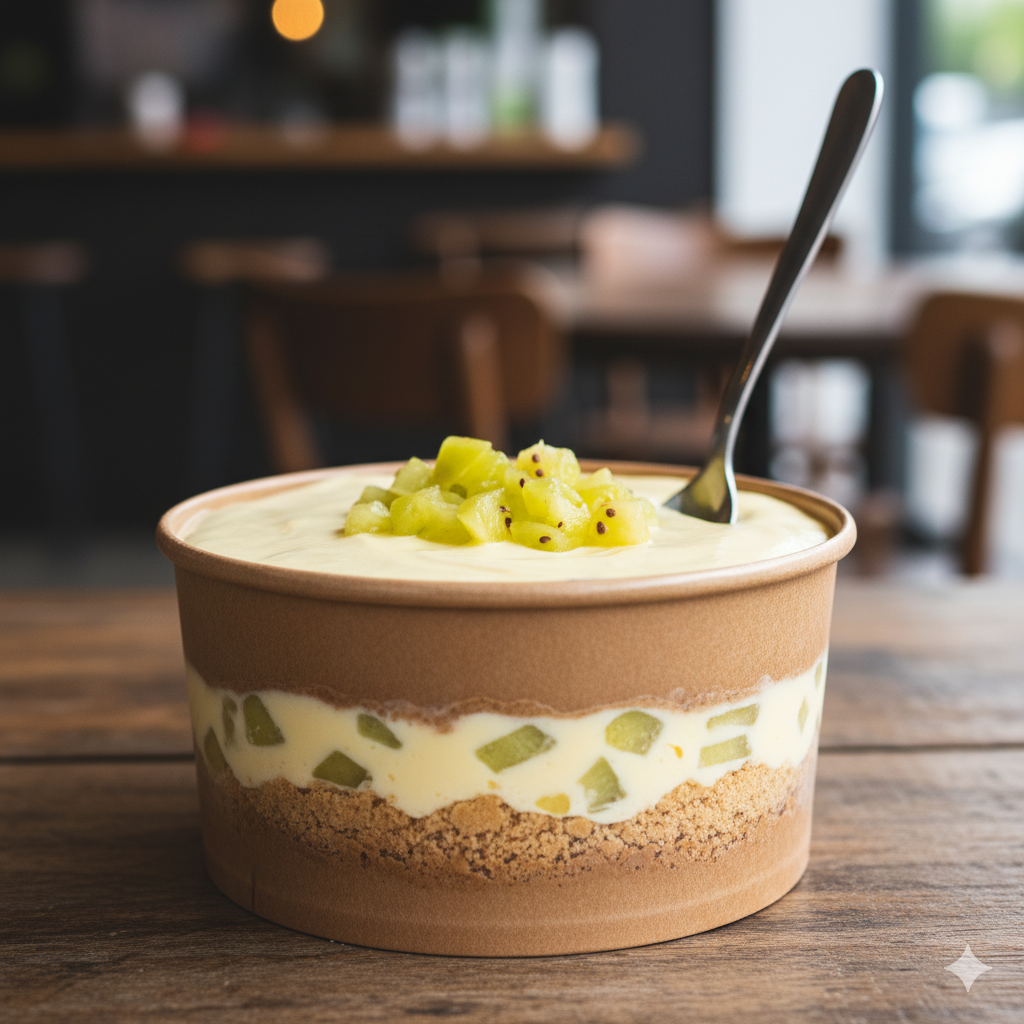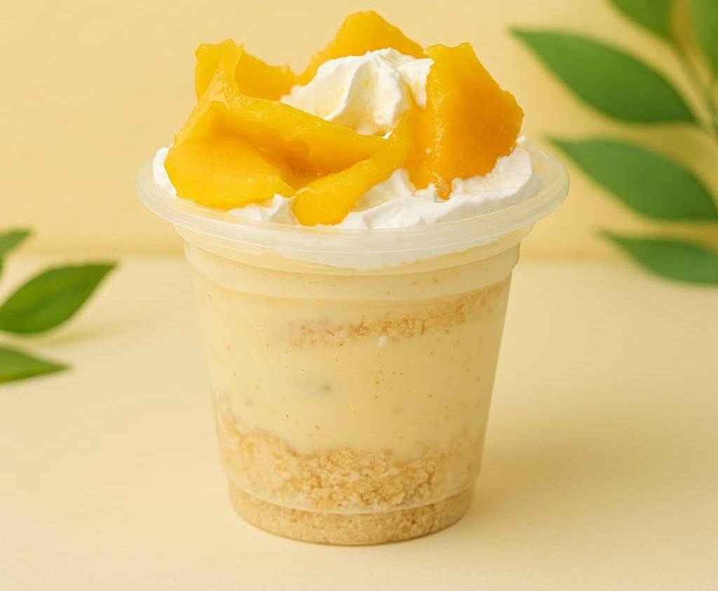 Preparado con pulpa natural de mango, crema suave y base de galleta maría.