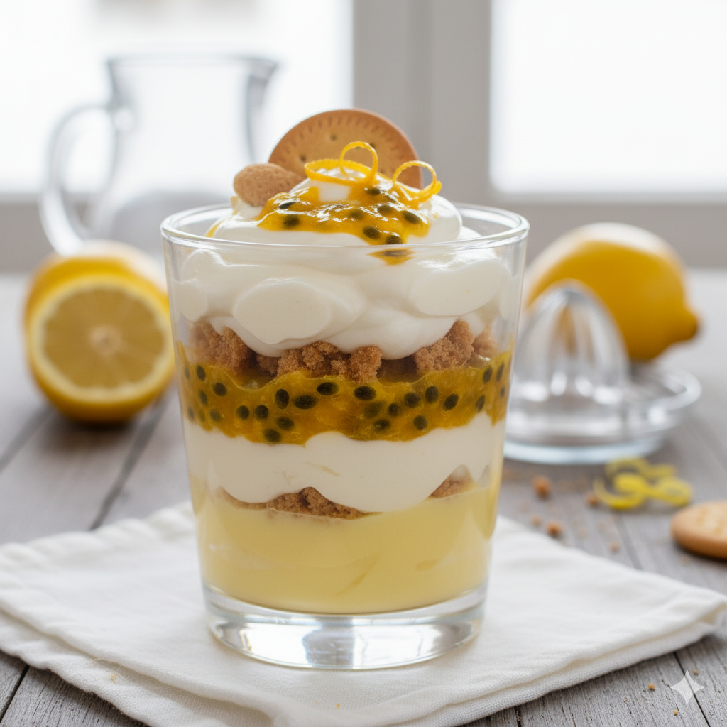 Hecha con pulpa natural de maracuyá, crema suave y galleta maría.