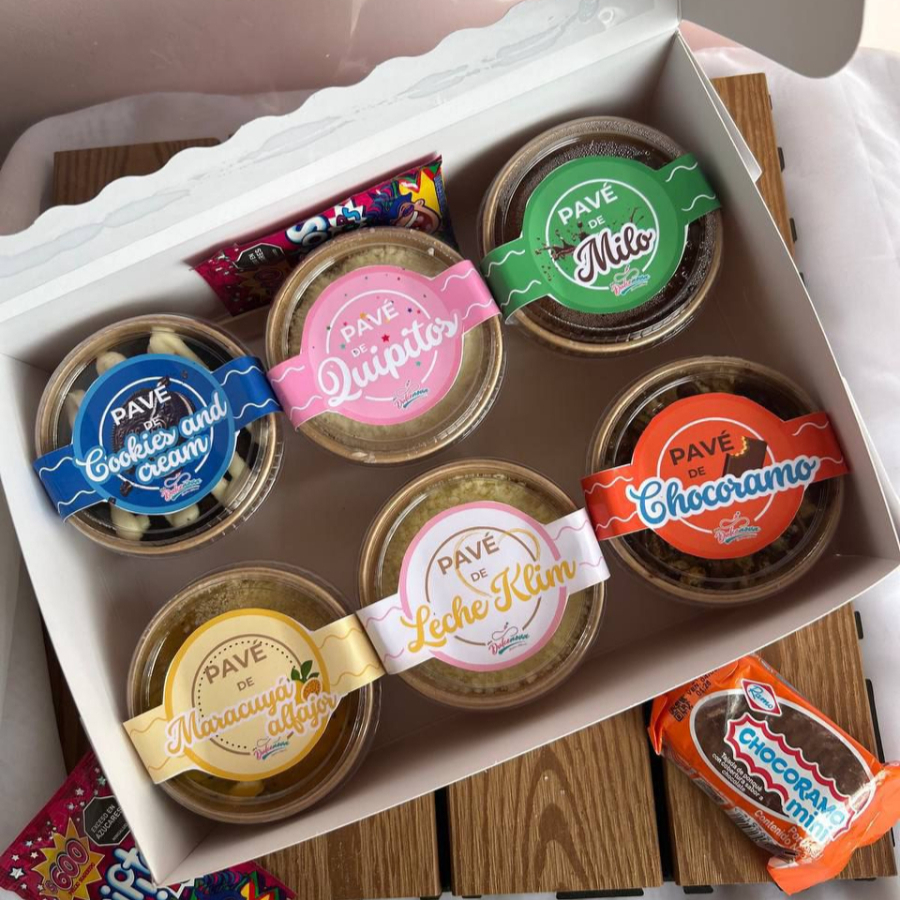 Caja de 6 mini pavé de 4 onzas cada uno. elige 6 sabores favoritos, 1 de cada sabor o repite sabores