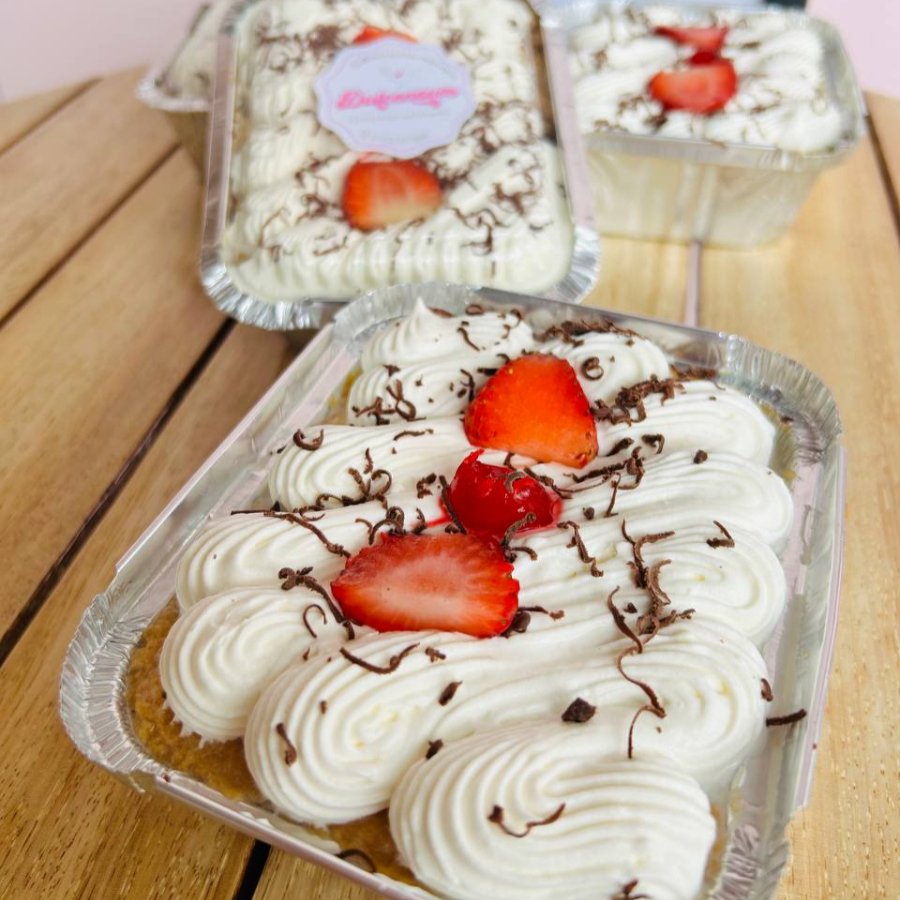 Deliciosa torta de 3 leches, crema chantilly, fresas, ralladura de chocolate y cereza.
