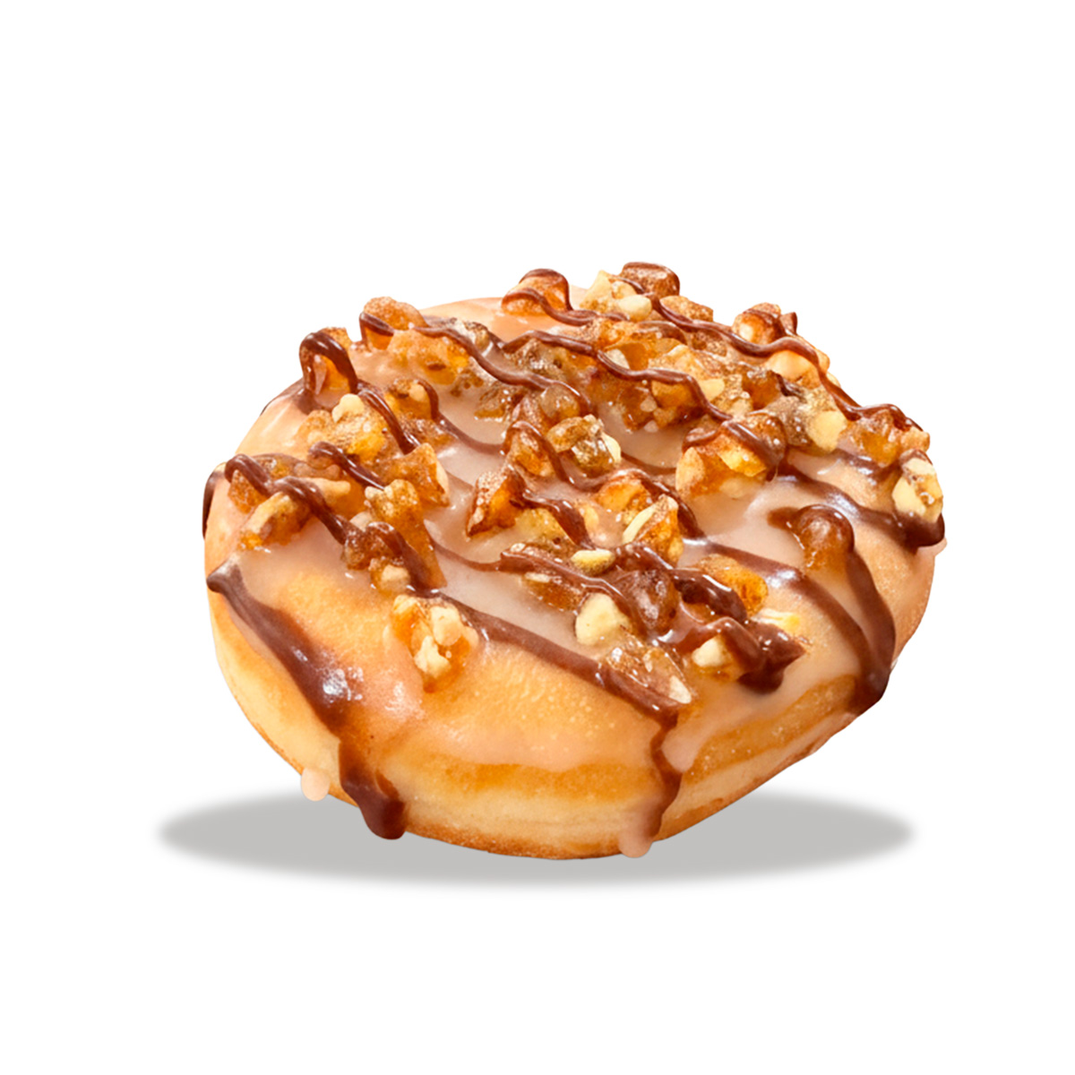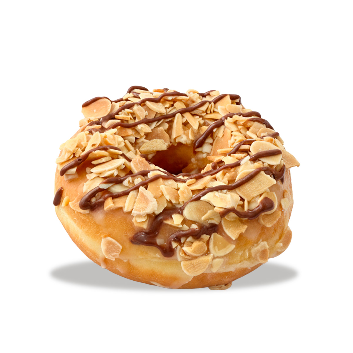 Suave donut rellena de chantilly, cubierta de chocolate blanco y avellanas confitadas que explotan en textura y sabor. un verdadero capricho premium