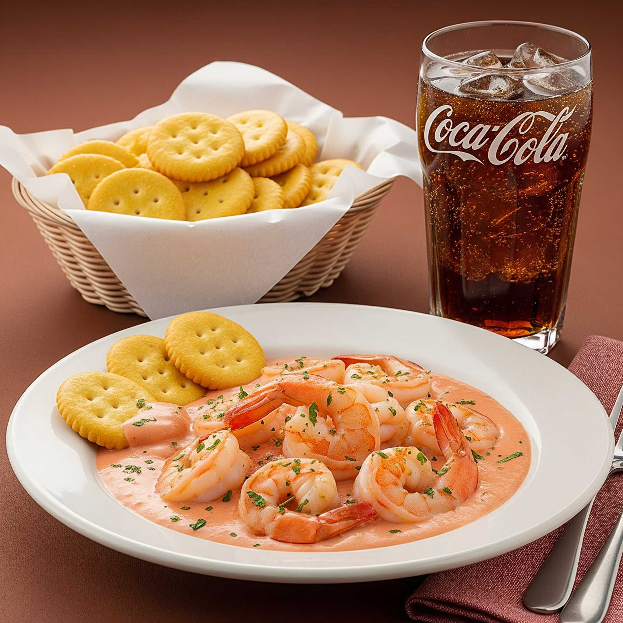 Camarones en salsa de la casa ligeramente picante con galletas saladas
