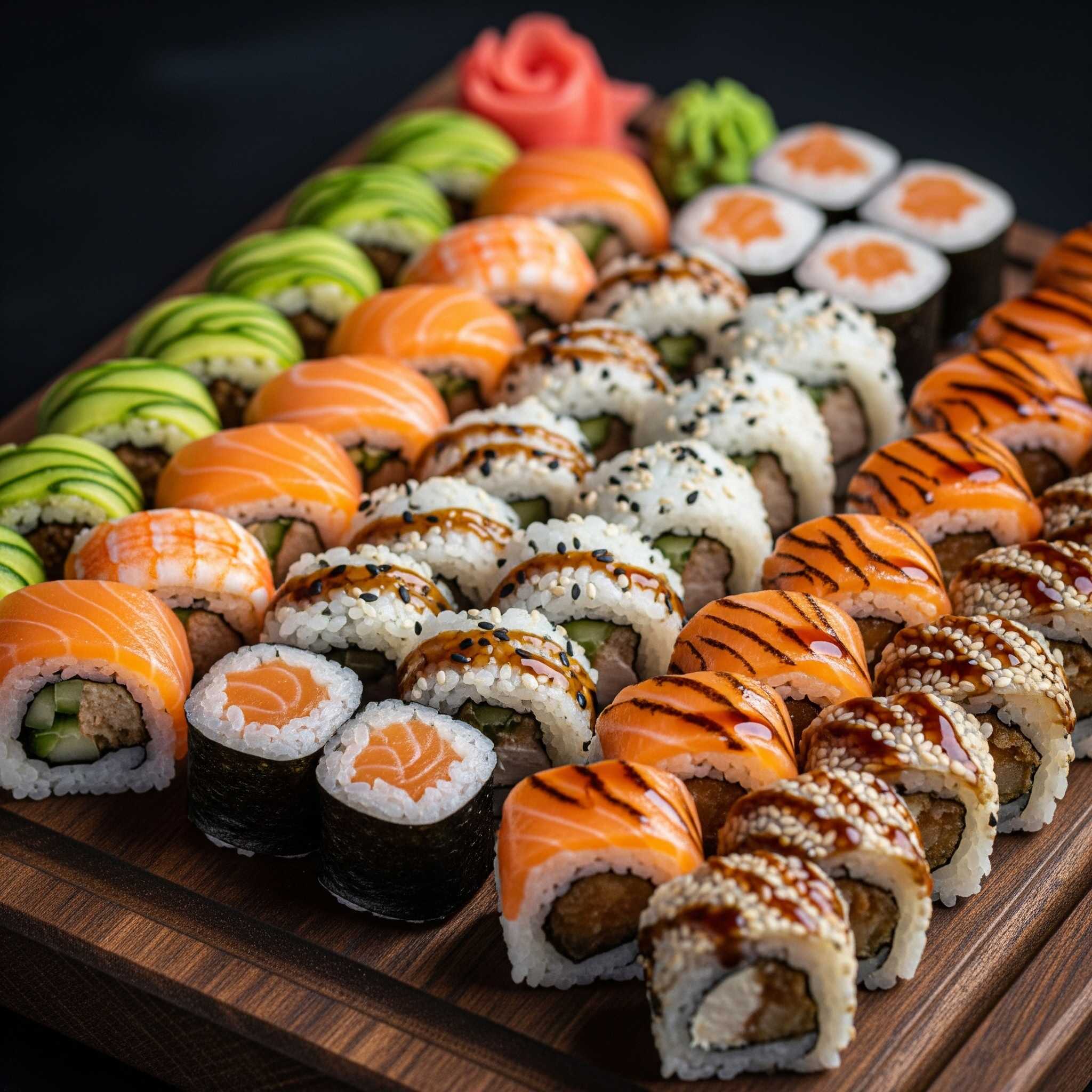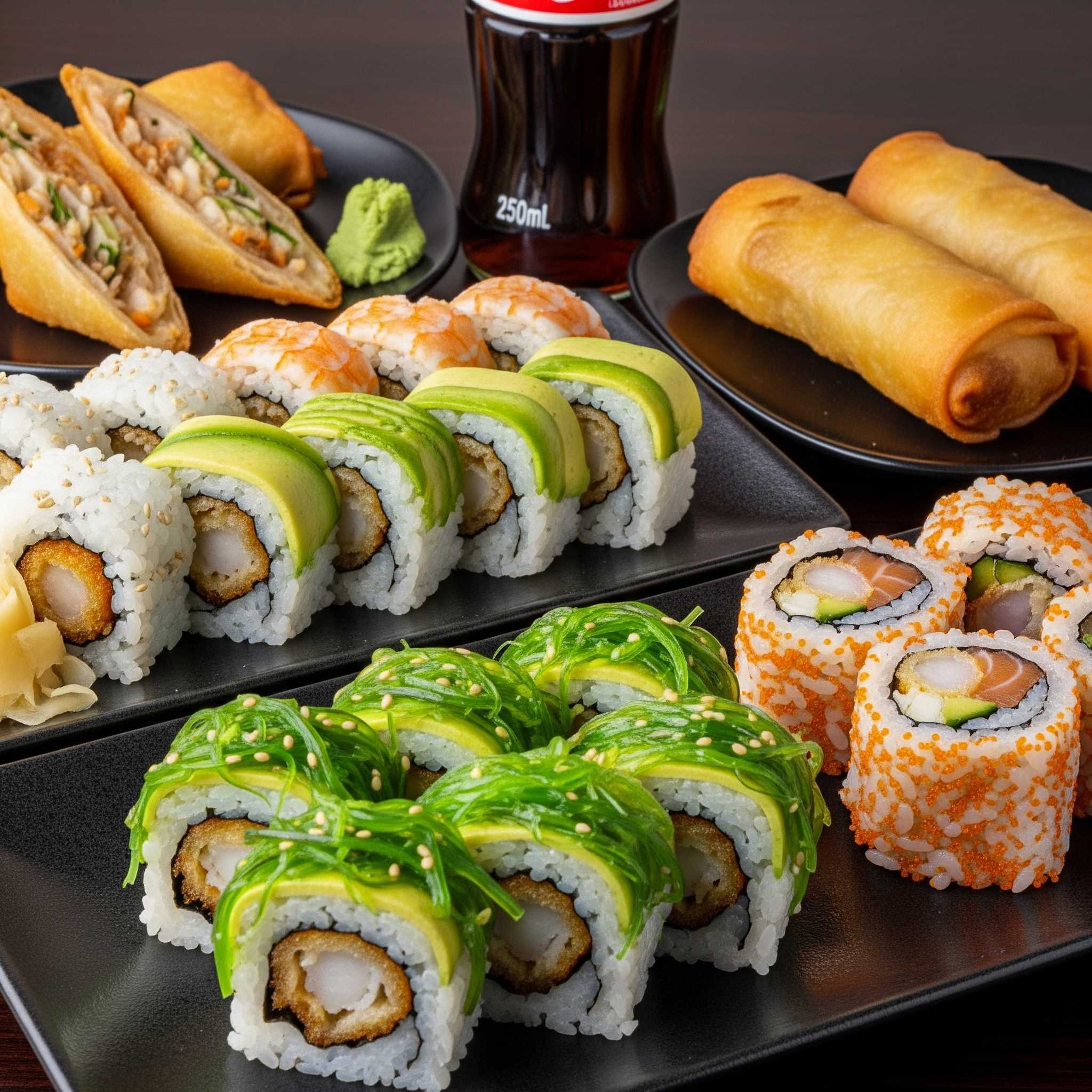 Sushi especial, ana queen, tiger roll y chiken roll, 30 bocados.