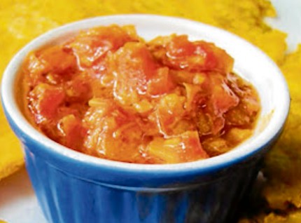 Sobrebarriga en salsa, con 2 acompañamientos a elección entre maduro, papa a la francesa y arroz + salsa criolla + tomate y limón..
