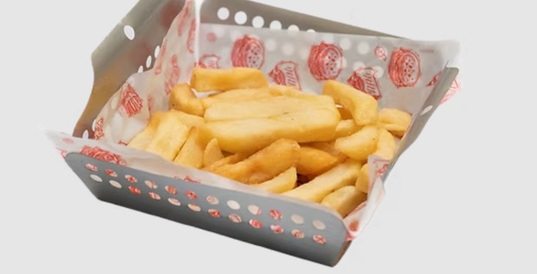 Deliciosos chuletines de cerdo con papa francesa acompañado de jugo Hit.