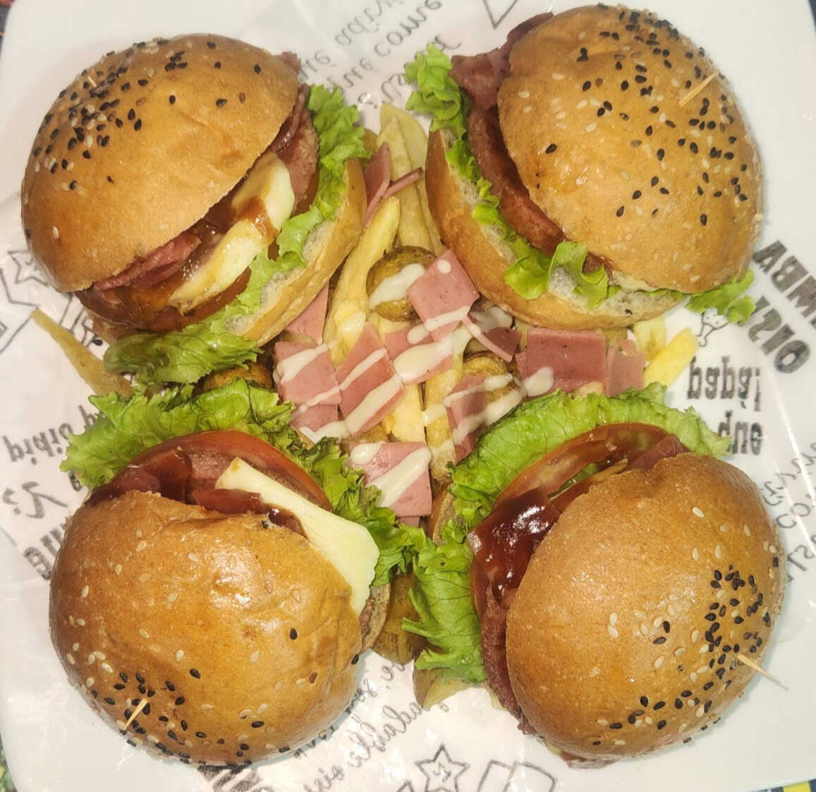 Maxi Burger Jr X 4 + Papas Bacon 🍔🍔🍔🍔