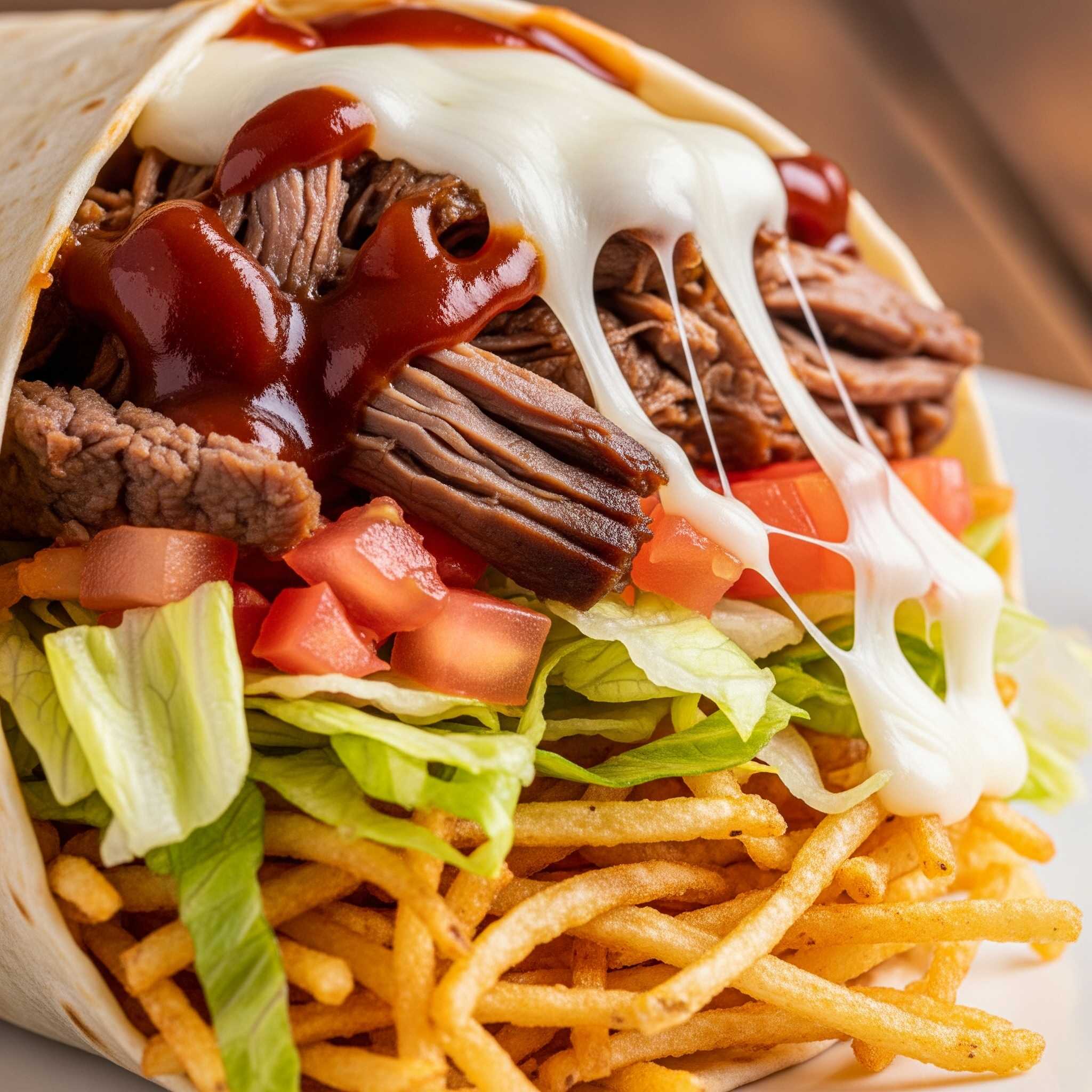 Jamón, carne, pollo desmechado, queso, tomate, lechuga, salsas y porción de papa.