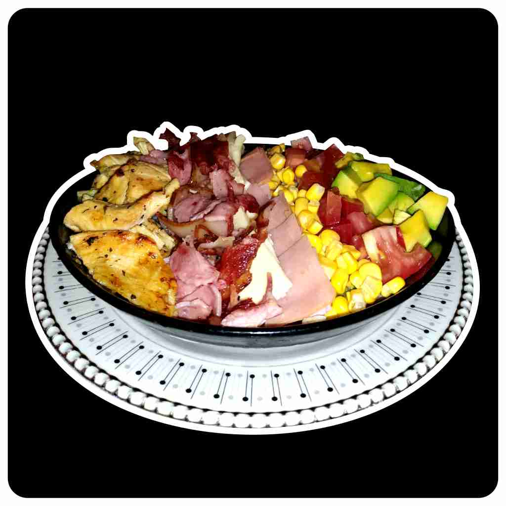 Pollo, tocineta, jamón, aguacate, maíz, tomate, lechuga y queso.