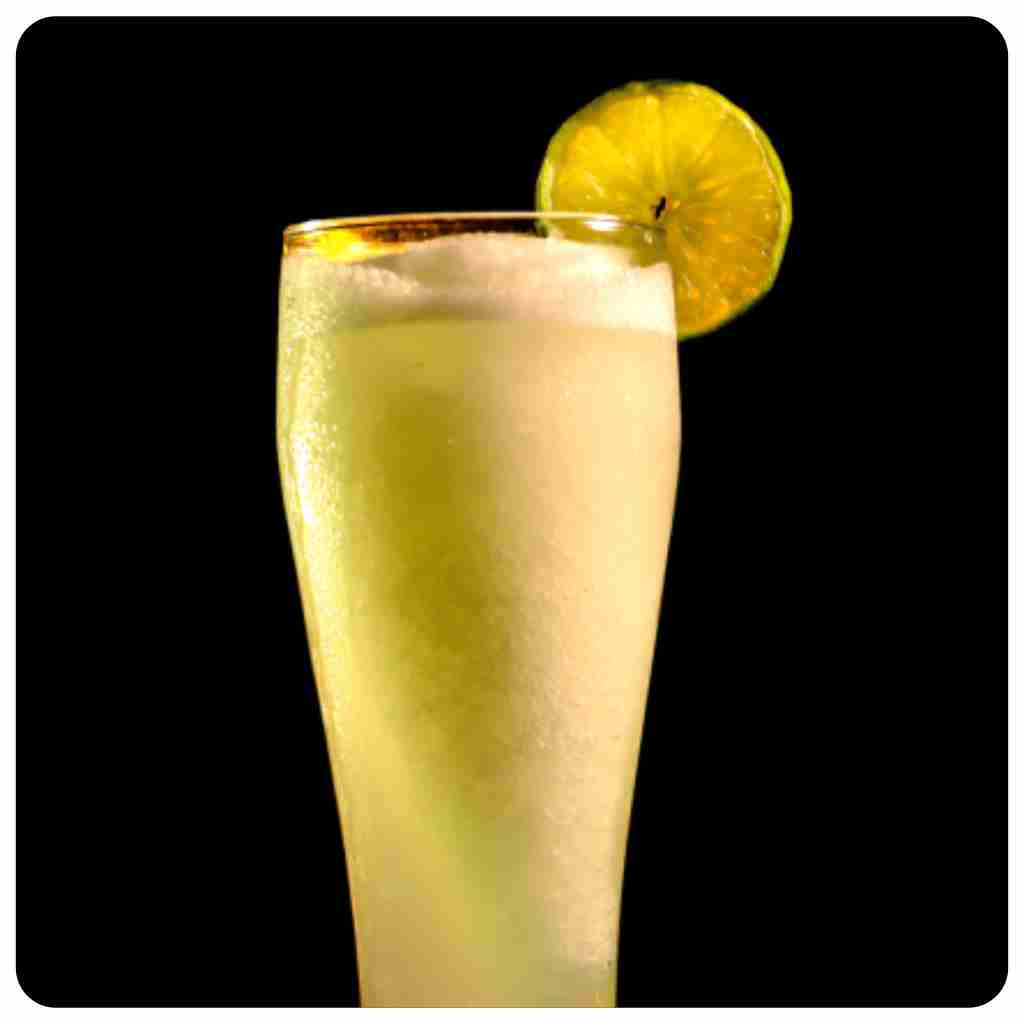 Trozos de jugoso chicharrón con laminas de patacón + limonada