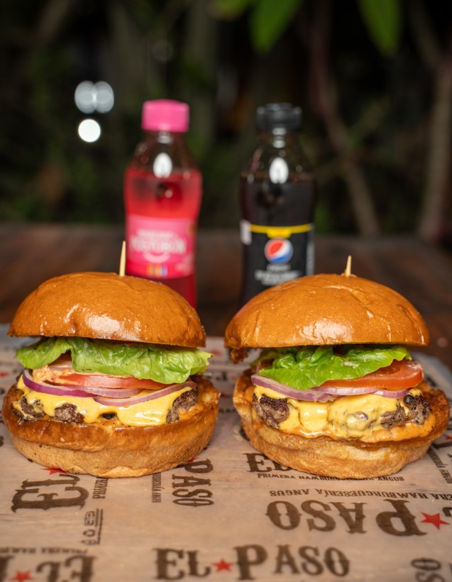 3 hamburguesas 200 gr carne angus, queso mozzarella, tocineta, cebolla, tomate, lechuga, salsa de la casa, 2 porciones de papas personales y gaseosa postobon 1.5 L. (Sabor sujeto a disponibilidad de la tienda)