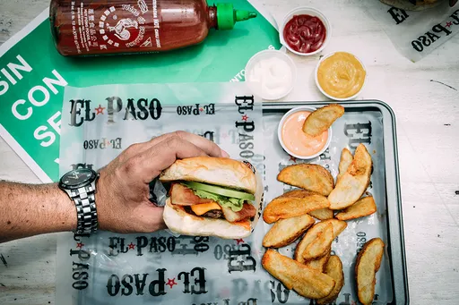 Hamburguesa con carne angus, término 3/4, pan brioche, lechuga, tomate y salsa de la casa a base de pepinillos, mayonesa y mostaza a base de pepinillos, Toppings con precio extra.