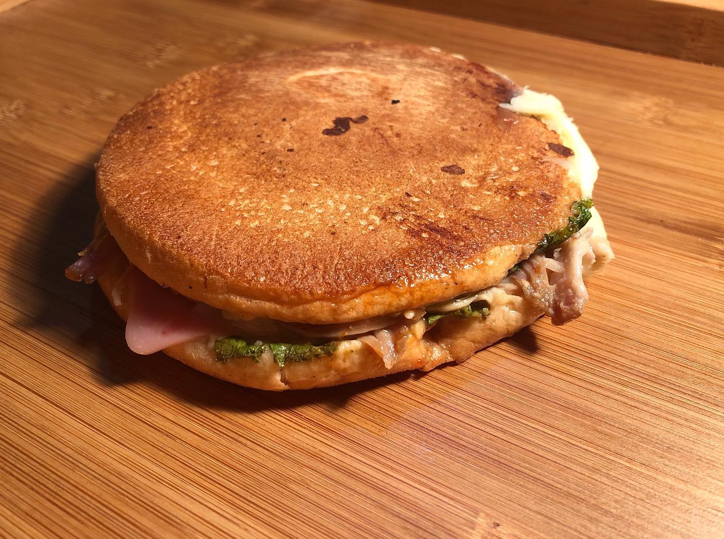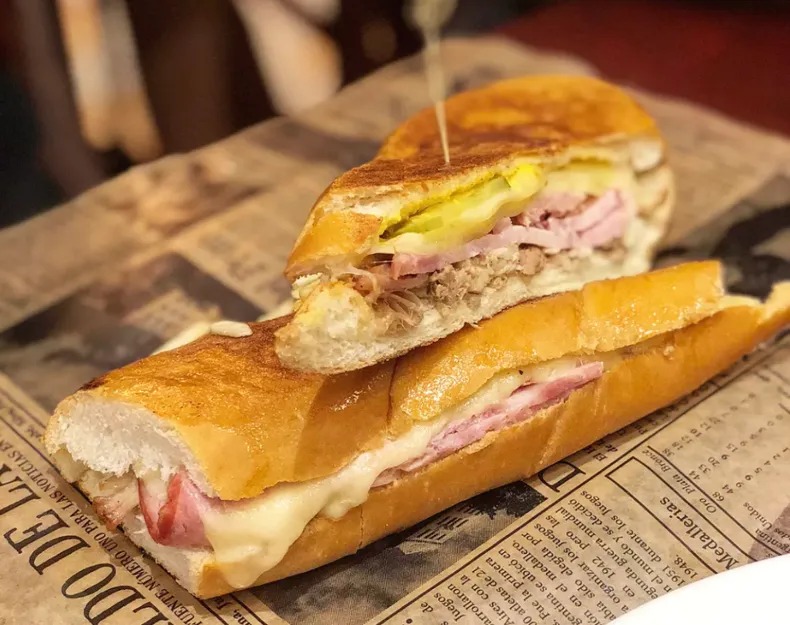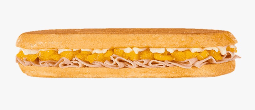 Super sándwich 18cm con pan premium crocante, doble jamón premium, queso mozzarella, piña calada, deliciosa salsa dulce de la casa (con mayonesa) y salsa de ajo.