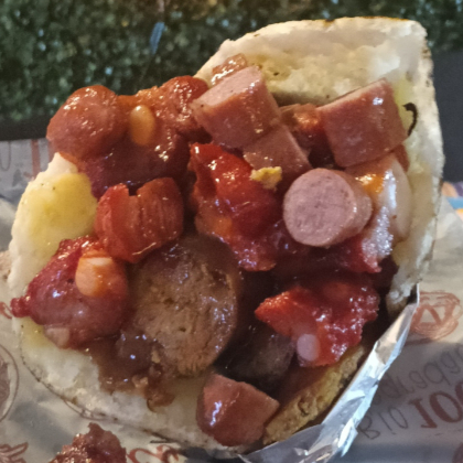 endita Chorizo Papas amarillas fritas con salchicha, chorizo santarosano picadito, queso fundido, papa ripio y el toque irresistible de nuestras salsas de la casa. ¡Un clásico con sabor bendito! 🙌🔥