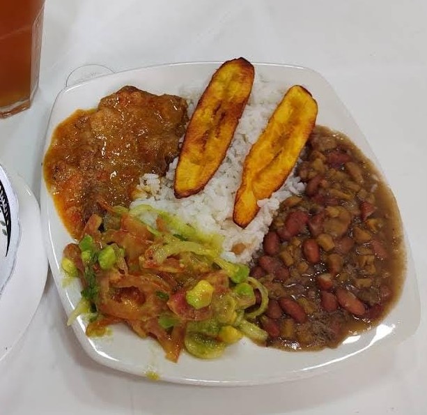 Delicioso Calentado de Frijoles o Lenteja con una proteina, arepa o tajada y Bebida