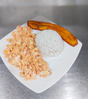 Huevos en Cacerola, acompañados con tajada o arepa segun tu elección + Arroz Blanco + Bebida a Elección