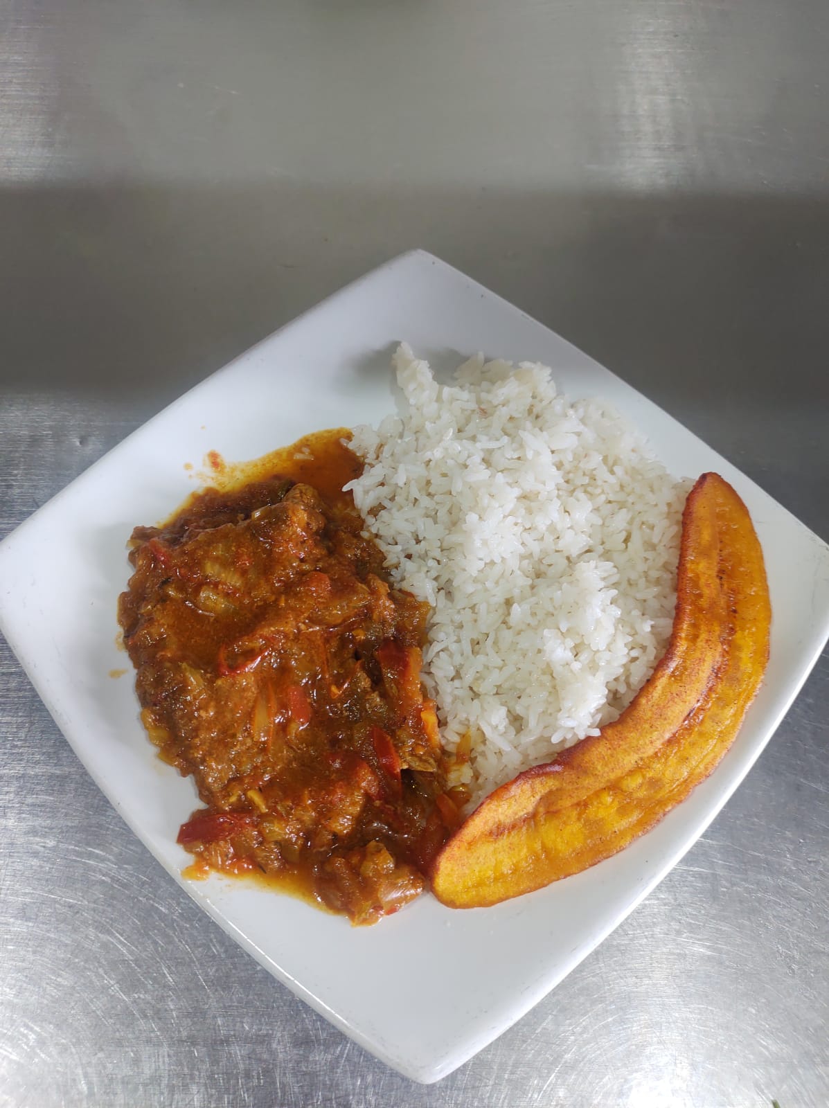 Porcion de Carne en Bistec, arroz y tajada y bebida a elección