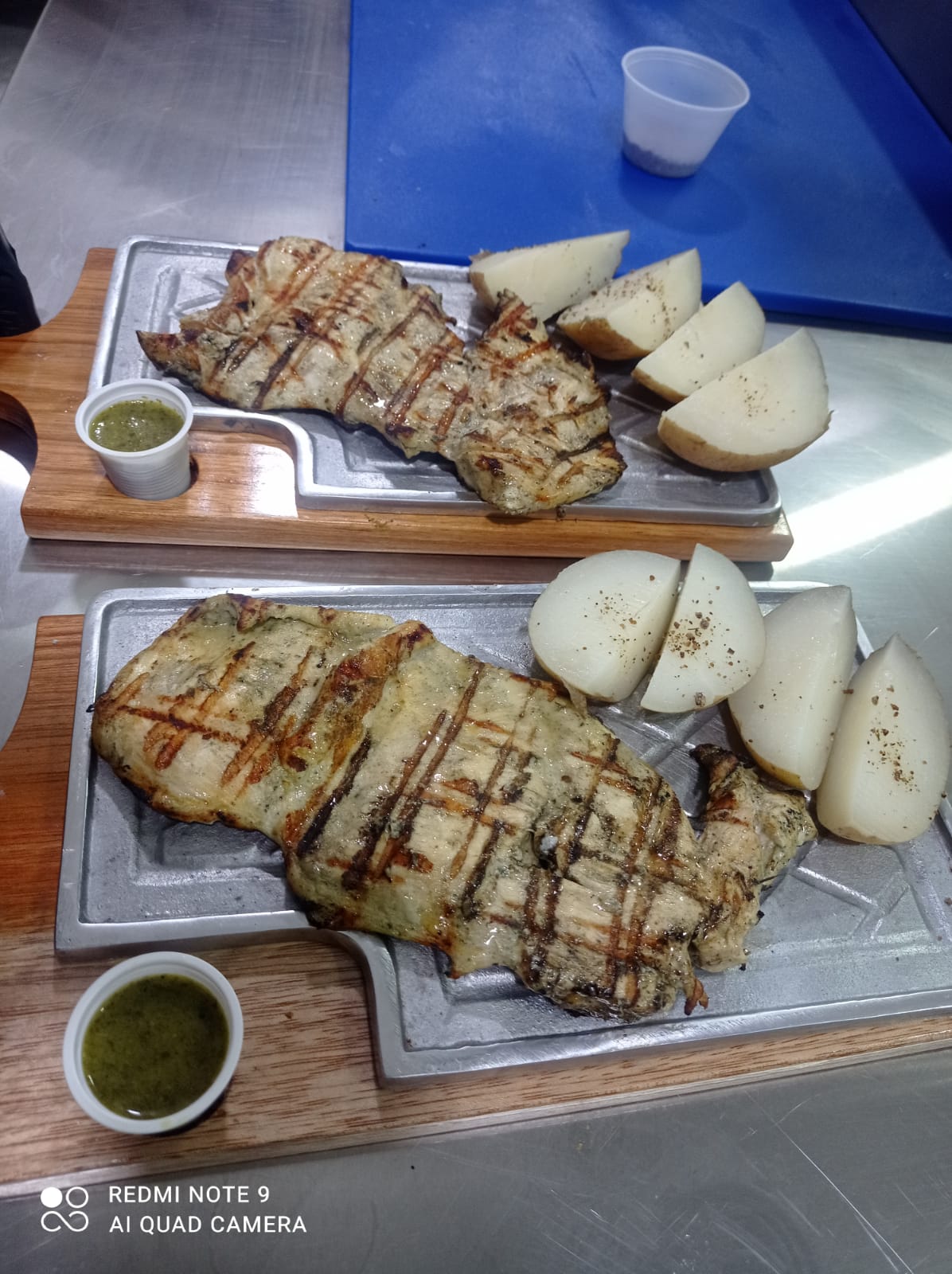 500 gr de Costilla ahumada al barril al estilo buffalo, acompañada de papa cocida, yuca frita, ensalada y chimichurri.