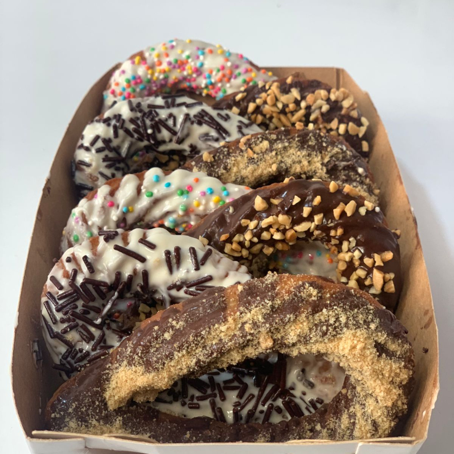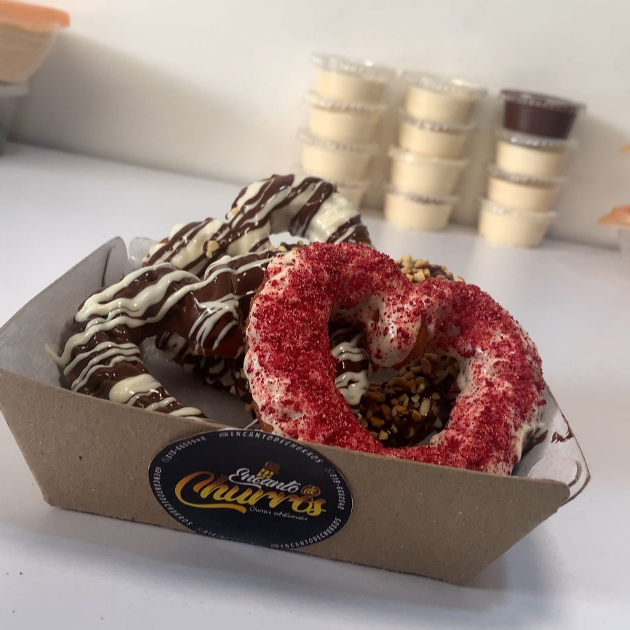 7 Deliciosos churros en forma de corazón, con cobertura y toppings a tu elección.