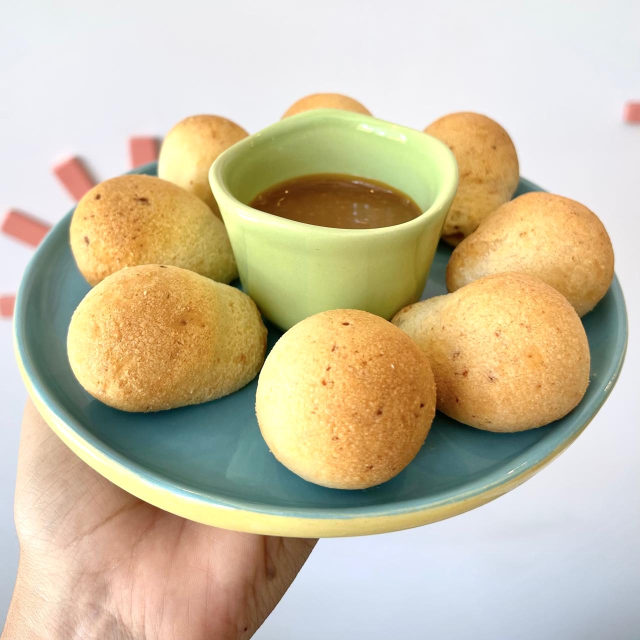 Horneados libres de azúcar, margarina y gluten. Ingredientes: harina de yuca, mantequilla, queso costeño, queso mozarella, huevo, stevia-eritritol. Contiene lácteos y huevo, se elabora en una planta que procesa productos a base de almendras, nueces, maní, huevo. Incluye 1 topping, escoge el tuyo: Arequipe endulzado con alulosa y monkfruit. Mermelada de arándanos sin azúcar Queso cottage Topping adicional 3.000