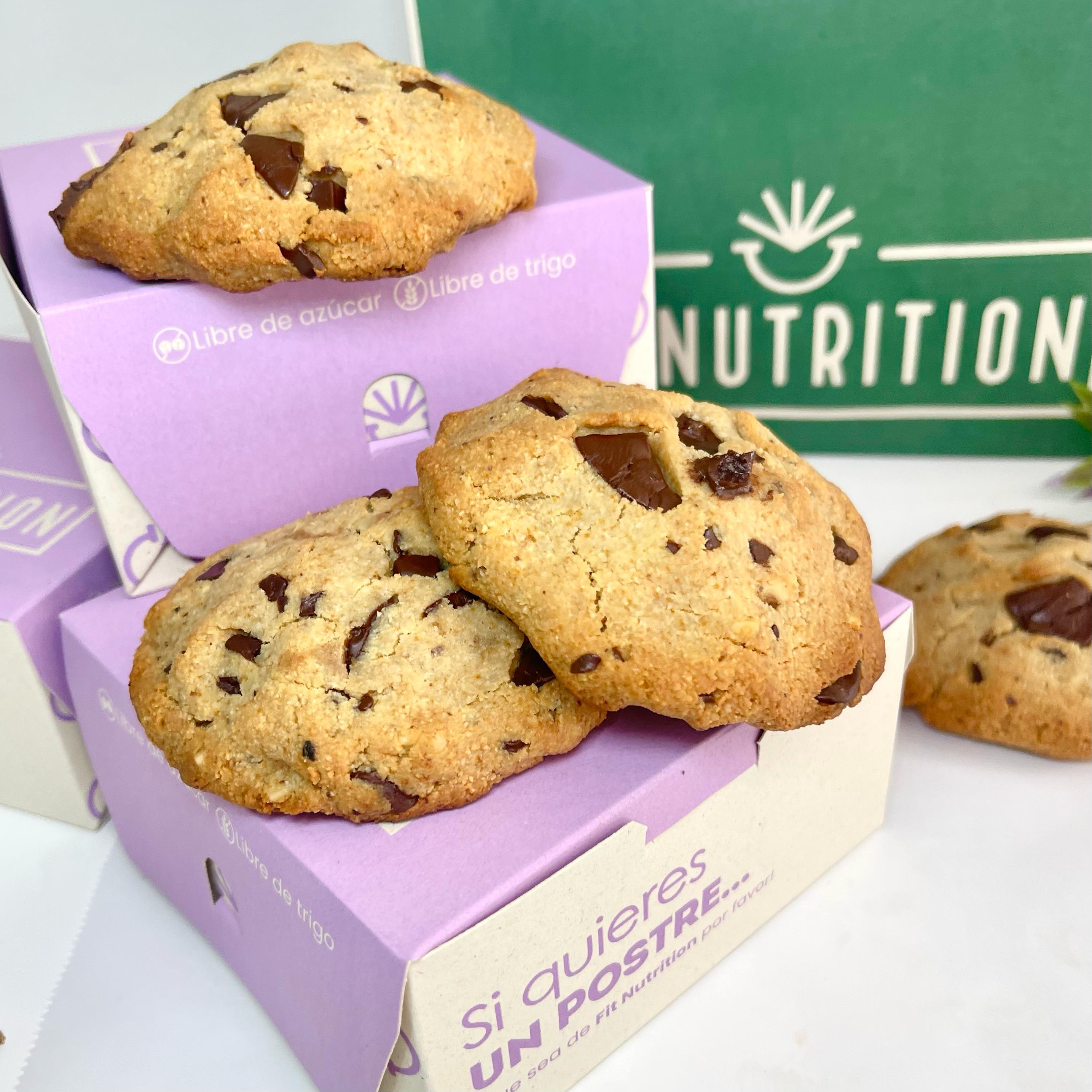 Galleta estilo new york libre de azúcar, lactosa y gluten. Ingredientes: harina de almendras, alulosa, monkfruit, huevo, mantequilla ghee, vainilla, chocolate 60% sin azúcar, nuez del nogal (walnut). Peso aproximado 100 gr. Contiene almendras y nueces, se elabora en una planta que procesa productos a base de almendras, nueces, maní, huevo.