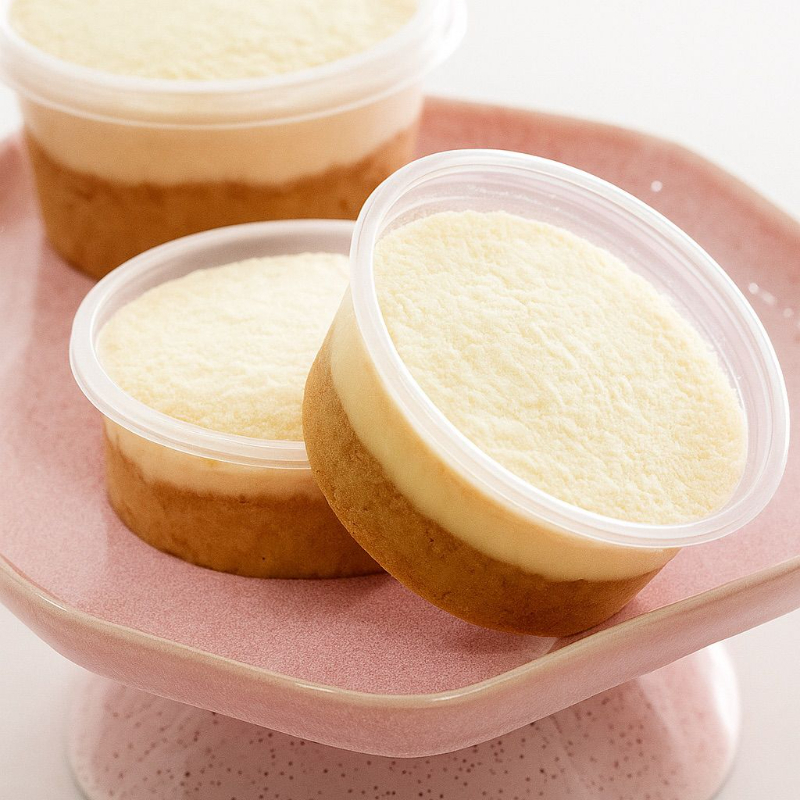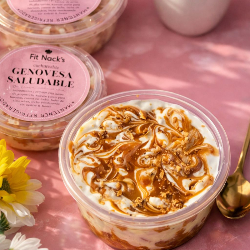 Ingredientes: Ghee, almendra molida, harina de coco, harina de arroz integral, stevia, huevo, relleno de yogurt griego, crema de leche, leche klim y stevia.