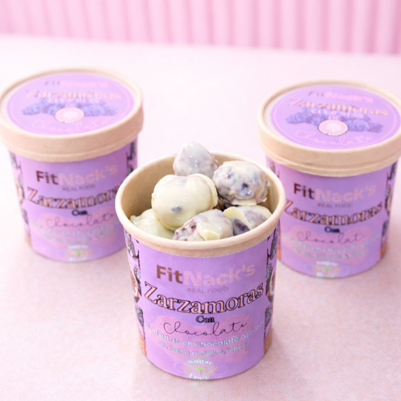 zarzamoras naturales cubiertas con chocolate blanco y oscuro sin azúcar