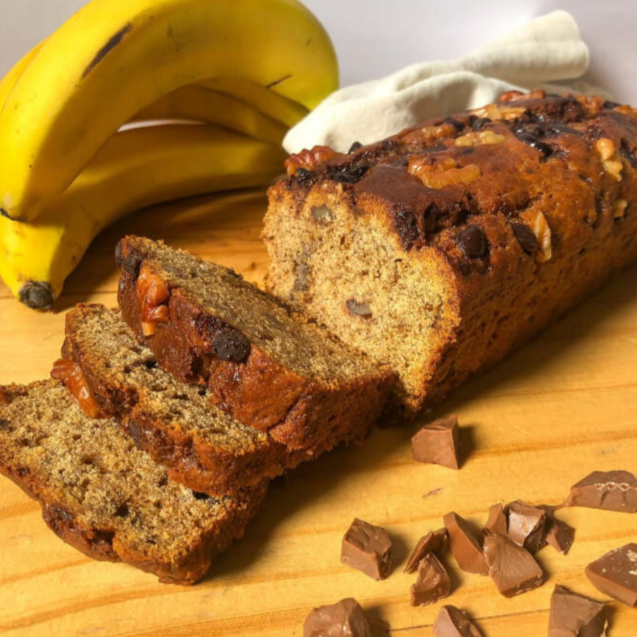 Ingredientes: banano, huevos, estevia, harina de almendra, harina de coco, chocolate oscuro al 58% sin azúcar