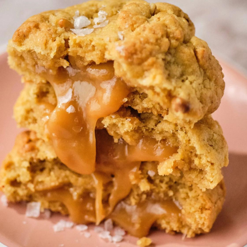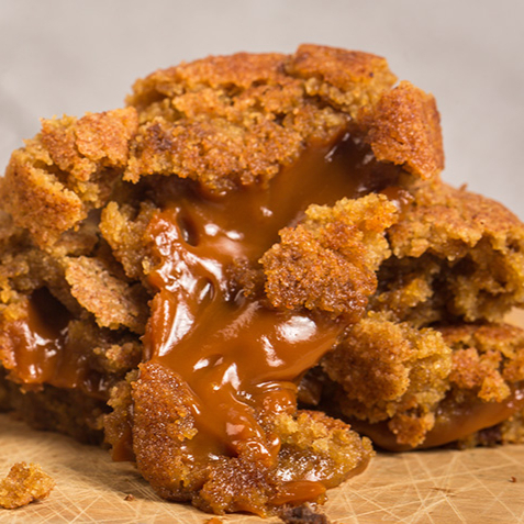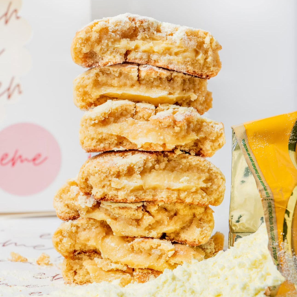 Elaborado con harina de almendras, Stevia, mantequilla Ghee, aromatizado con vainilla con centro cremoso de Arequipe sin lácteos