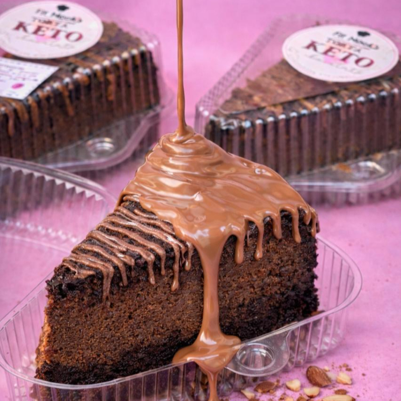 Ingredientes: huevos, almendra molida, aceite de coco, vainilla, leche de almendras, cacao, stevia, chocolate al 58 % sugar free, arequipe sin azúcar.