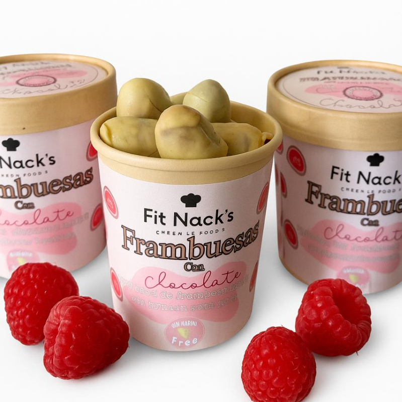 Frambuesas cubiertas con chocolate blanco y oscuro sin azucar