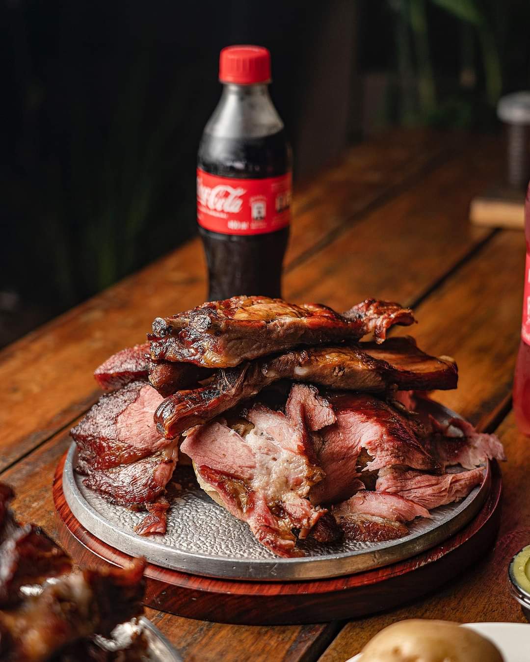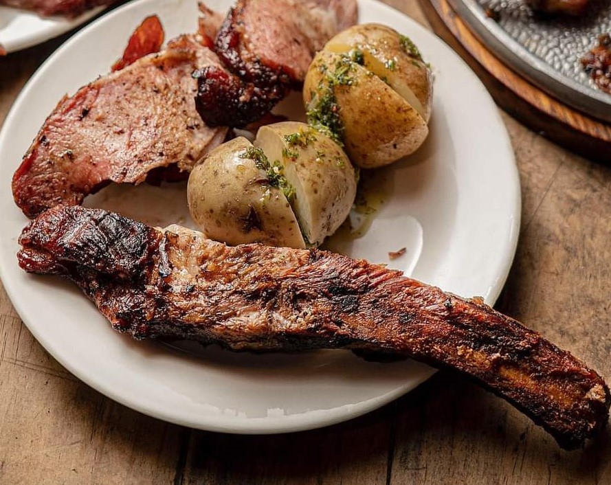 Jugosos trozos de ternera, costilla y chorizo, acompañado de papa cocida, ají y guacamole.