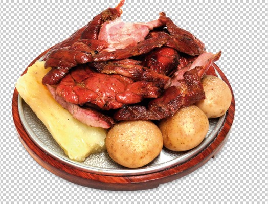 Jugosos trozos de carne, costilla y chorizo, acompañado de papa cocida, yuca, ají y guacamole.