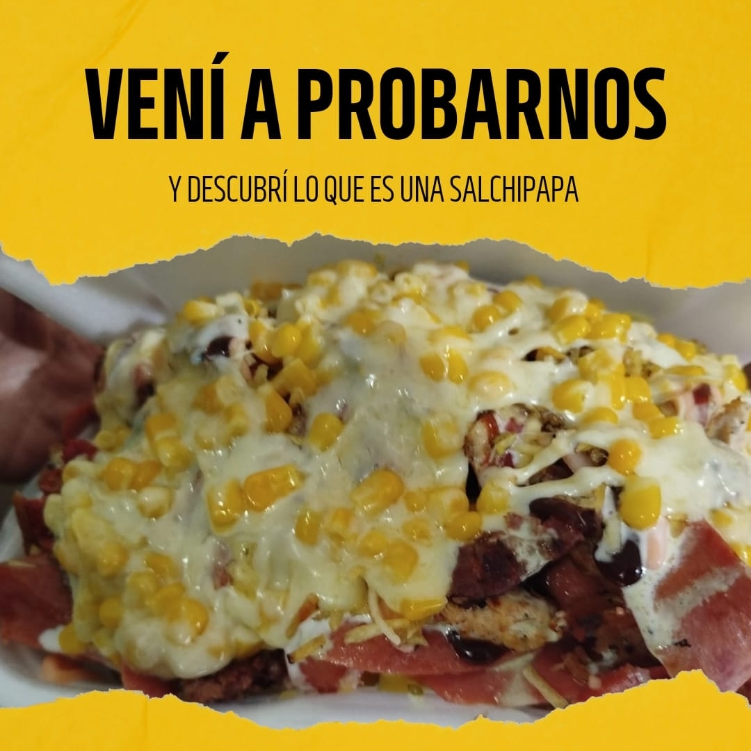 Papá amarilla, salchicha,queso,salsas al gusto+1 ingrediente pollo o costilla
