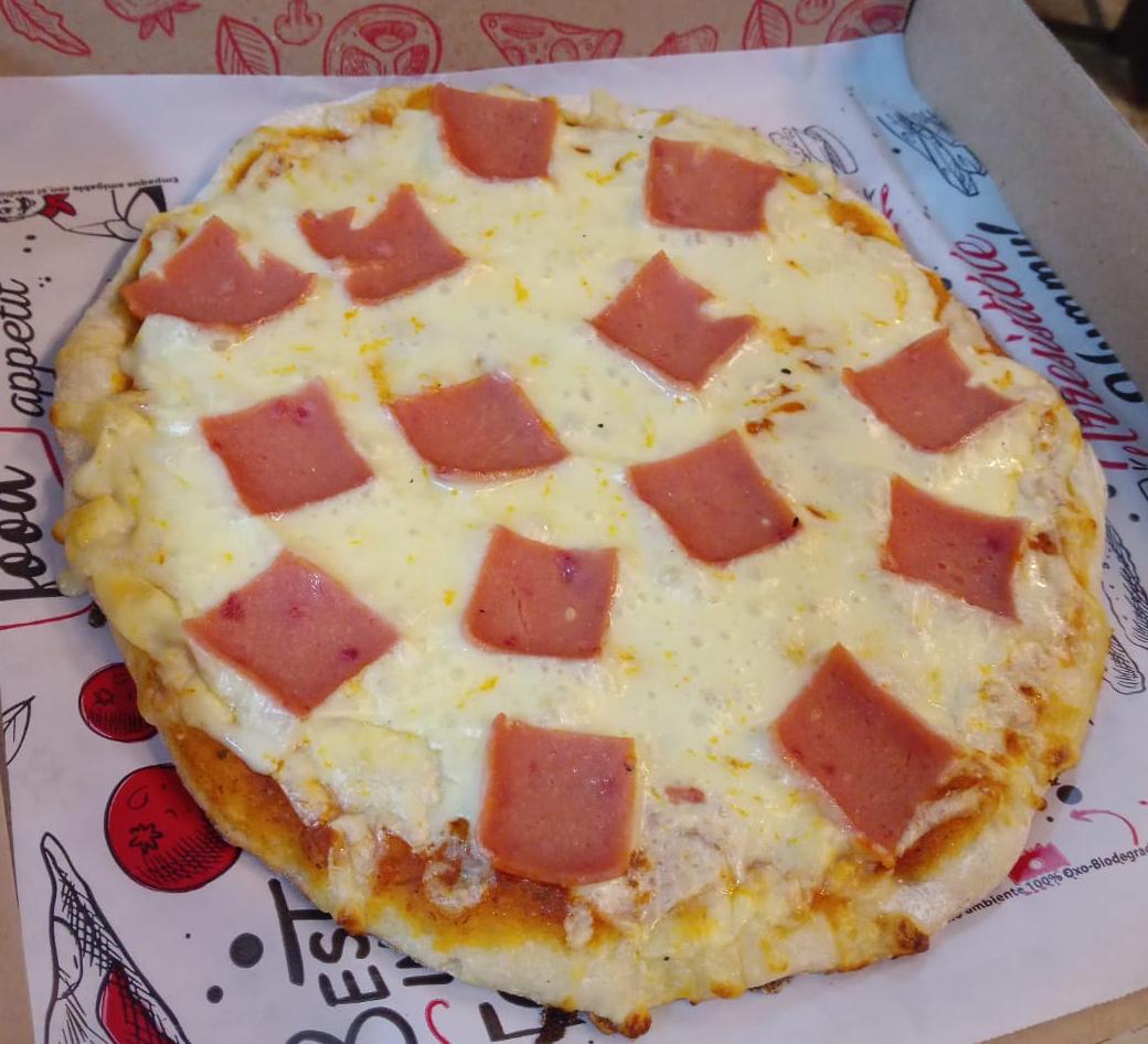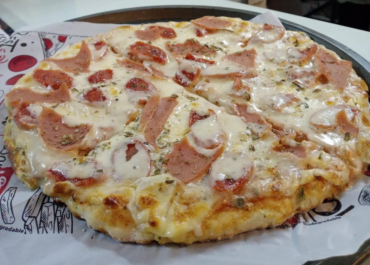 4 Porciones. Masa artesanal, salsa napolitana, queso mozzarella, jamón.
