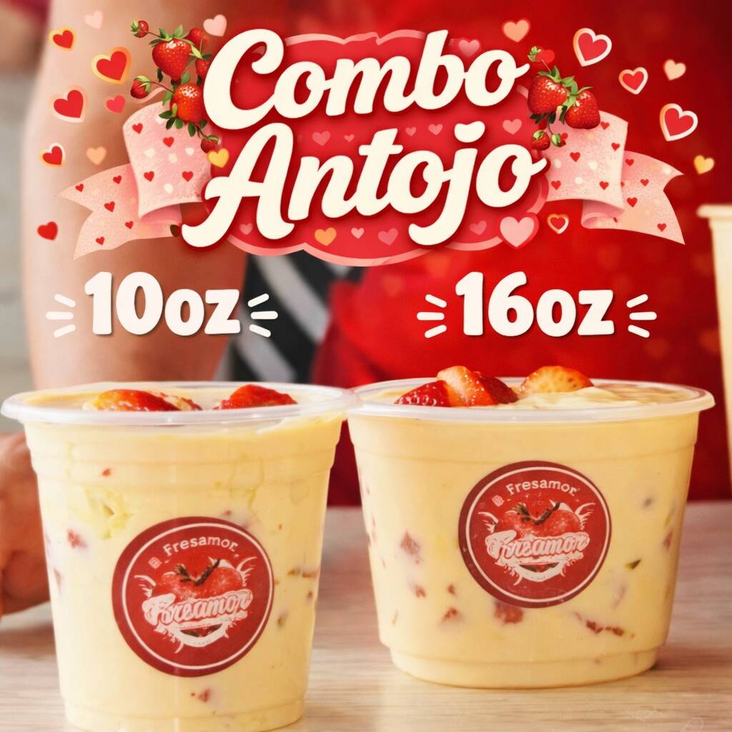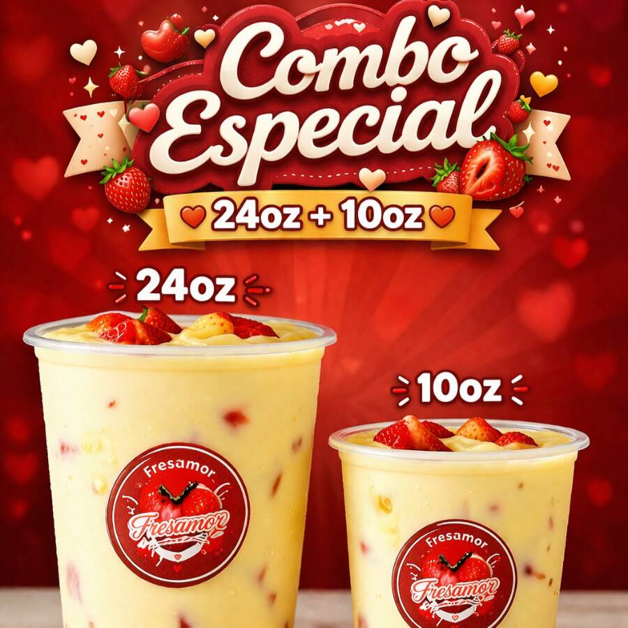 24 Oz En fresamor pensamos en los mas atojados, porque El de 16 onzas no siempre es sufficiente. Nuestras fresas frescas, cubiertas con una crema casera inigualable y delicadas laminas de queso, crean una experiencia que despierta los sentidos y deja huella en el paladar. mas que un postre, es un recordatorio de que el amor tambien se saborea y se comparte. vive la combinacion perfecta.