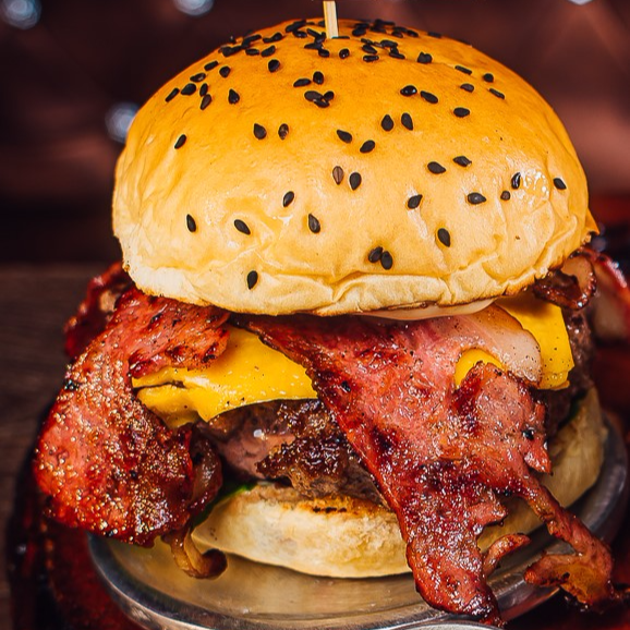 Carne angus 200gr, pan, salsa de la casa, lechuga, tomate, queso americano, tocineta y cebolla cruda o crocante