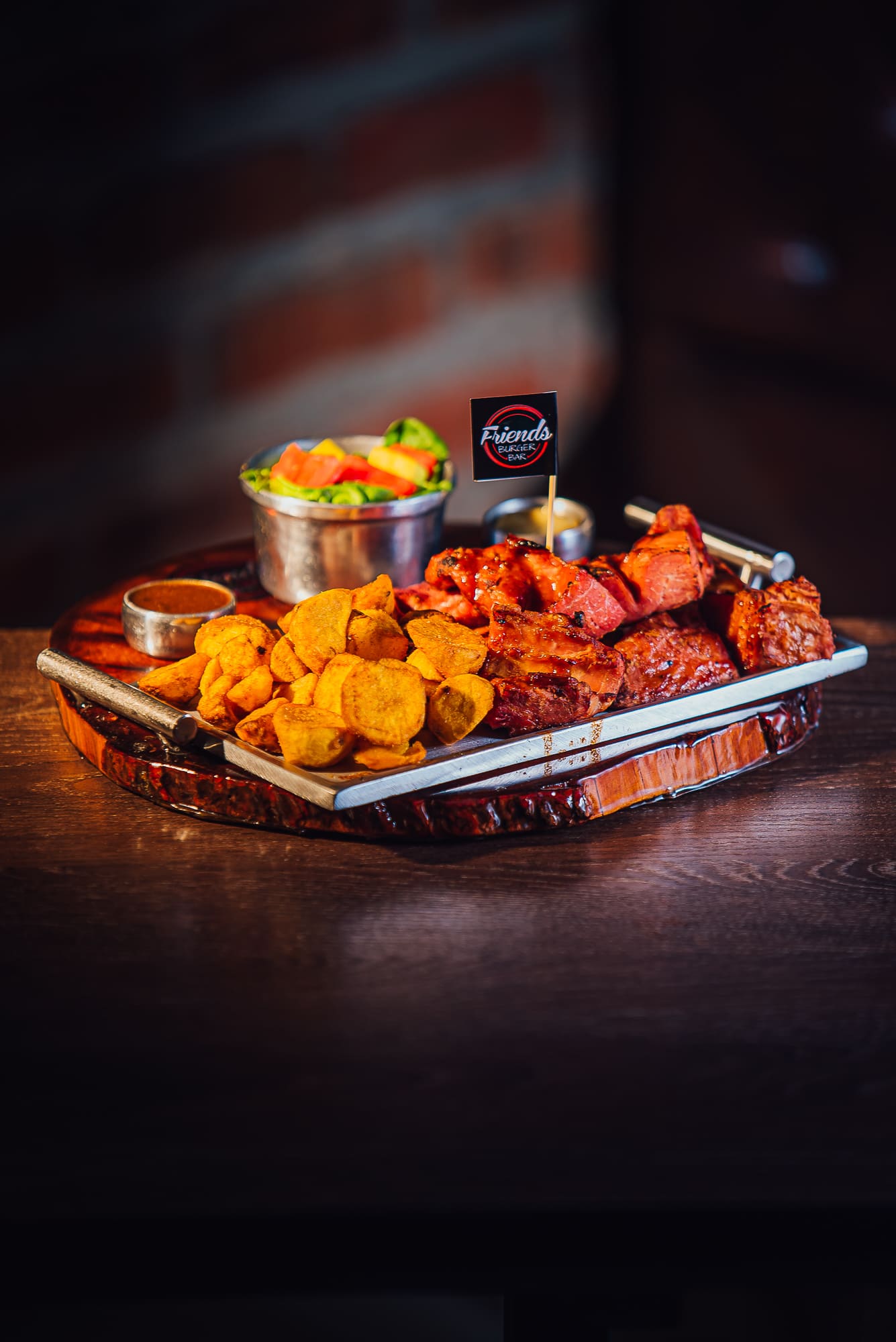 500gr de costilla de cerdo, bbq, acompañado de papas criollas y ensalada.