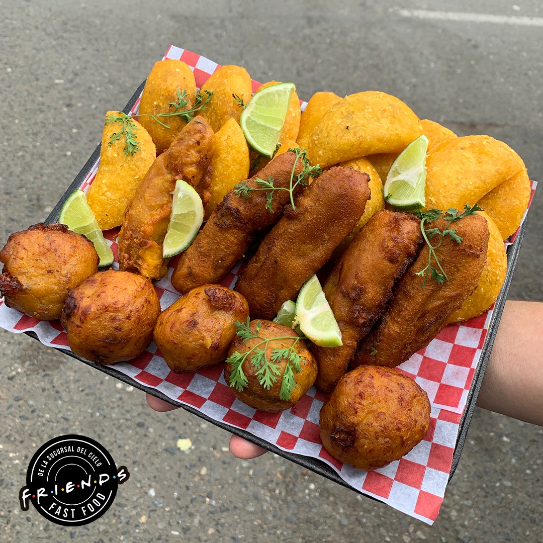 15 empanadas vallunas, 5 aborrajados, 5 marranitas acompañadas de ají, salsa de la casa y limón.