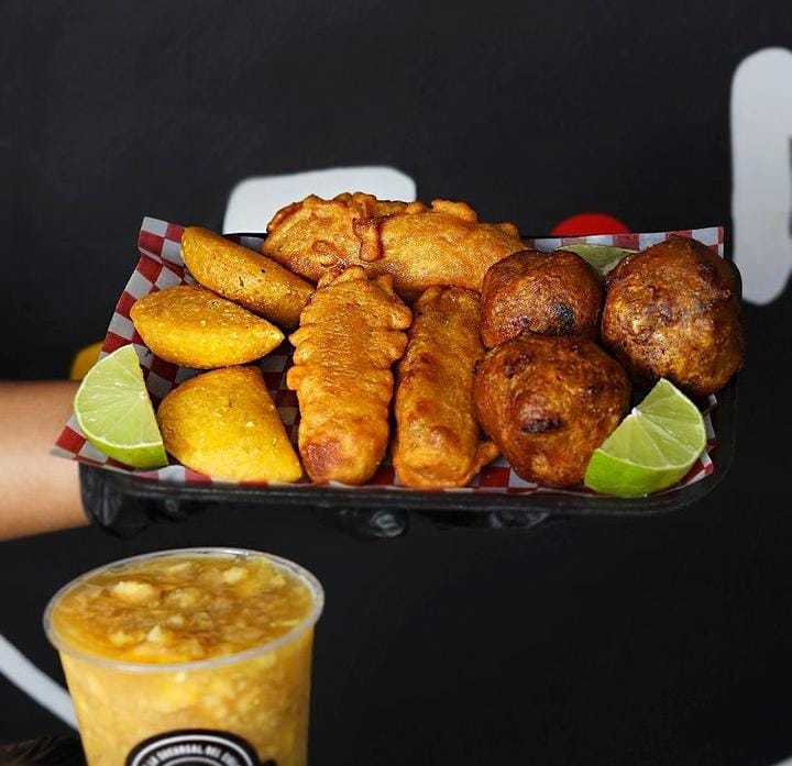 15 empanadas cocteleras, 5 aborrajados, 5 marranitas compañados con aji, salsa de la casa y limon.