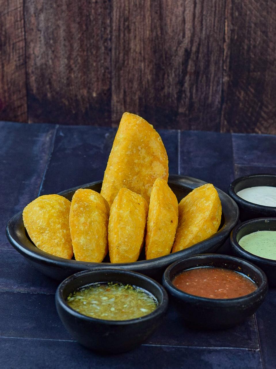Deliciosa papa aborrajada acompañado de salsa de la casa.