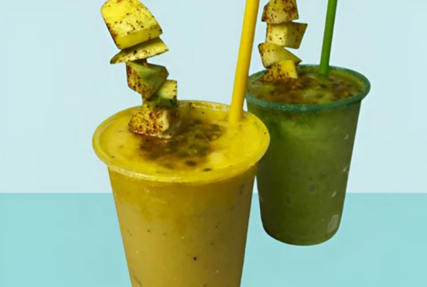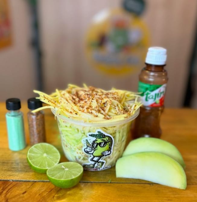 Pingo de mango, bubols de maracuyá o sobre maracuyá.